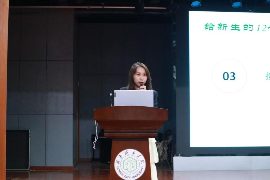 辅导员杨洋灵芝通过对比大学与高中在学习、生活、心理上的明显差异,给新生提供了12个“锦囊妙计”,为新生带来了一场详实的入学适应性教育、心理健康教育。