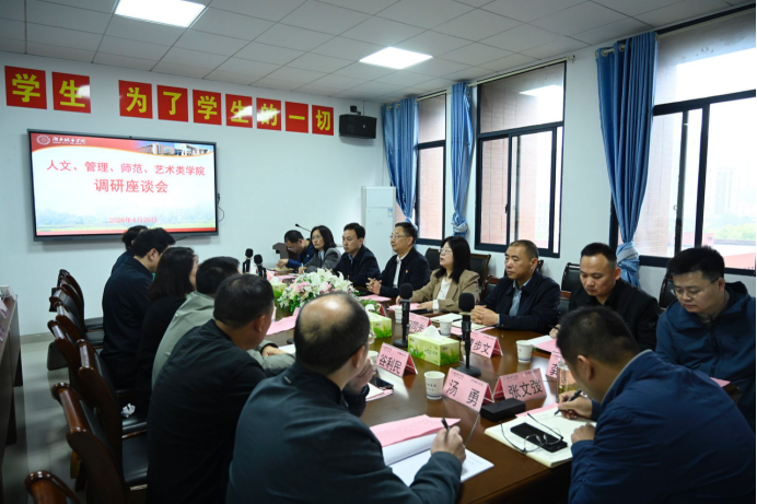在调研人文学院、管理学院、教师教育学院、美术与设计学院/国际教育学院、音乐与舞蹈学院等文科类学院时,王刚强调,要坚守育人初心,把牢办学政治方向。要全面落实习近平总书记关于哲学社会科学、教育、文艺等工作的重要论述,把政治标准和政治要求贯穿办学治院全过程,推动专业教育和思政教育的深度融合,引导学生树立正确的世界观、人生观、价值观;要立足校情特色,走好融合创新之路。要找准自身定位,避免同质化发展,将自身融合学校城市主干学科,沿着“城市+人文”“城市+艺术”等方向,打造一批具有辨识度的特色学科专业;要建强师资队伍,夯实事业发展根基。要始终把师德师风摆在教师队伍建设的首位,坚持教育与规范并重、激励与约束并举。要坚持引育并举,加大高层次人才引进力度,打造一支政治素质过硬、业务能力精湛、育人水平高超的专业化教师队伍;要彰显责任担当,提升社会服务能力。要立足益阳,深化校地合作,充分挖掘本土文化资源,形成特色文化品牌。要聚焦地方发展需求,开展社会服务、艺术实践和志愿活动等,打造和选送一批优秀作品,增强学校的社会影响力和美誉度。